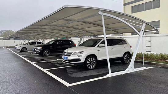 停車場遮陽棚:張拉膜的靈活性使它成為停車場頂棚的不二之選,兼具美觀與實(shí)用性。