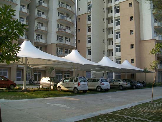 相比傳統(tǒng)車棚,膜結(jié)構(gòu)具有更好的抗老化、抗腐蝕性能。