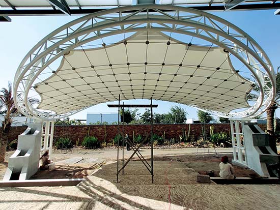 園區(qū)入口:作為景觀的標志性建筑,景觀亭膜結(jié)構(gòu)能夠在入口處形成引導(dǎo)作用,讓游客感受到不同凡響的氛圍。