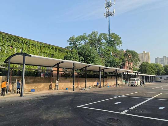 不僅如此,膜結構遮陽篷的設計也非常獨特。膜材料本身具有優(yōu)異的張力,能夠形成流暢的曲面,打造出現(xiàn)代感十足的外觀。這種外形設計既能吸引目光,又不失實用性,適合各種不同風格的建筑和景觀需求。