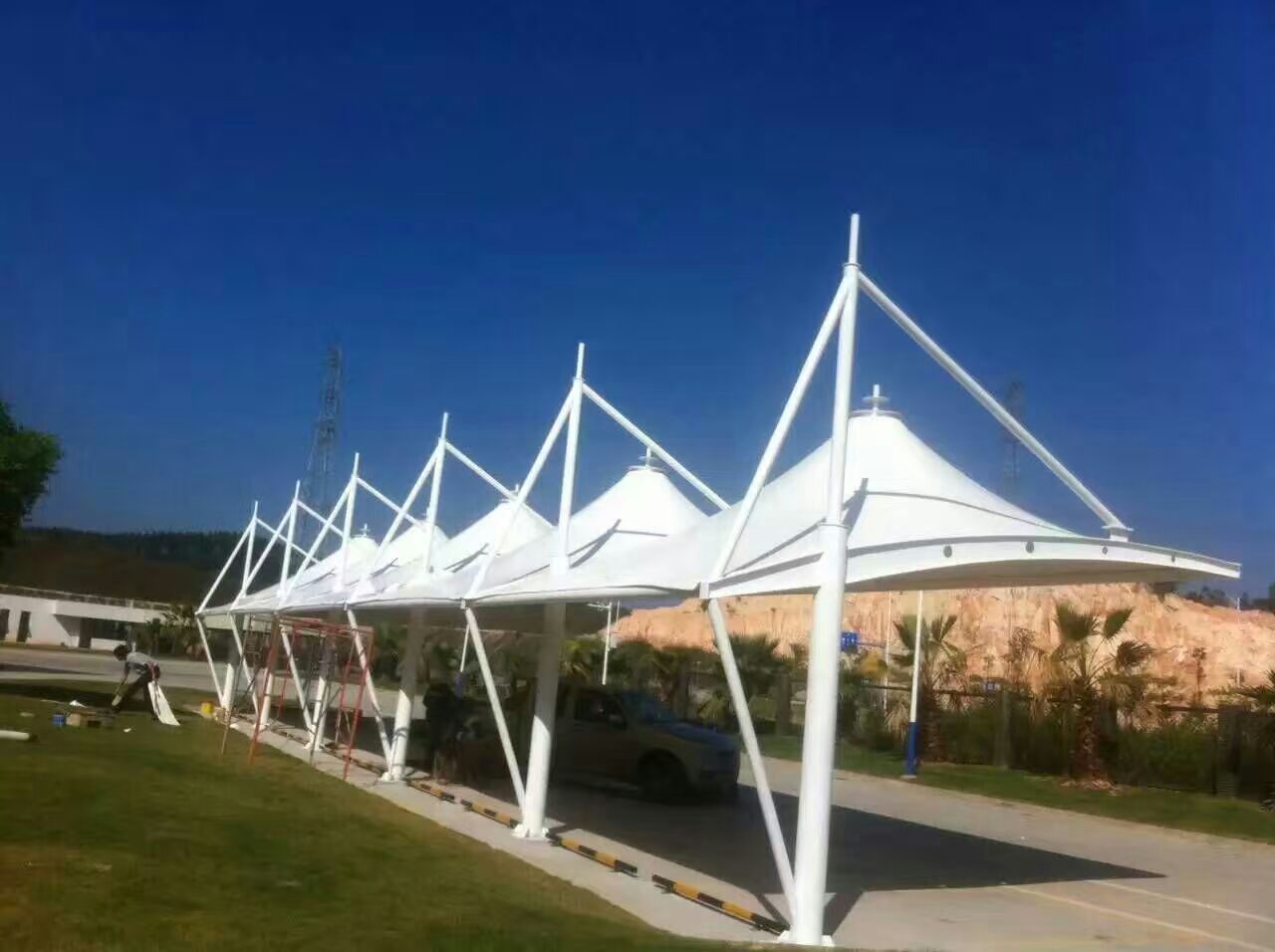 膜結構停車棚施工圖片
