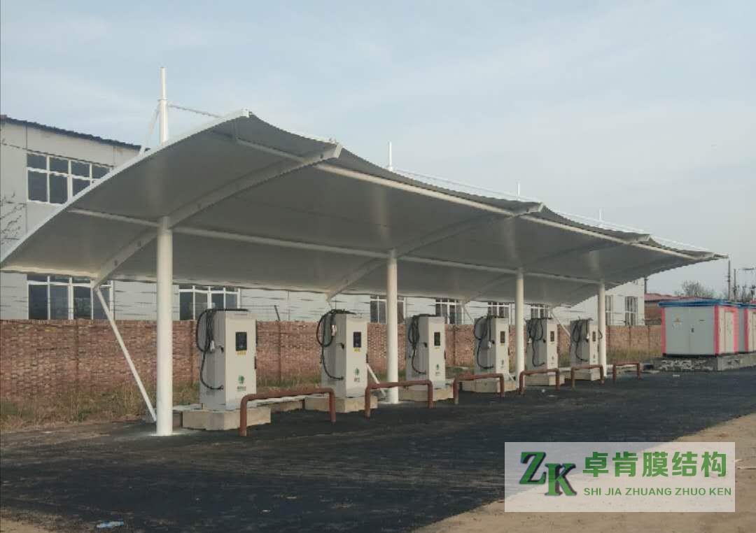 張拉膜結(jié)構(gòu)遮陽棚---天津市靜海區(qū)充電樁張拉膜結(jié)構(gòu)遮陽棚。