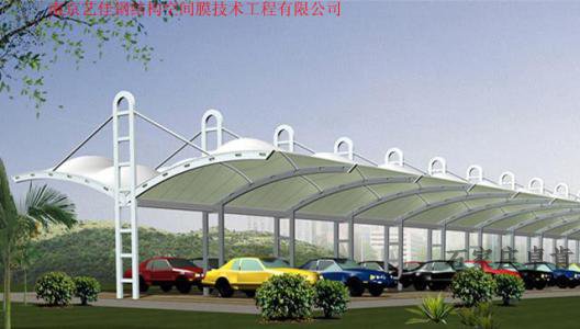 膜結(jié)構(gòu)停車棚的造型比較獨特,外觀也比較別致的新型建筑結(jié)構(gòu)。