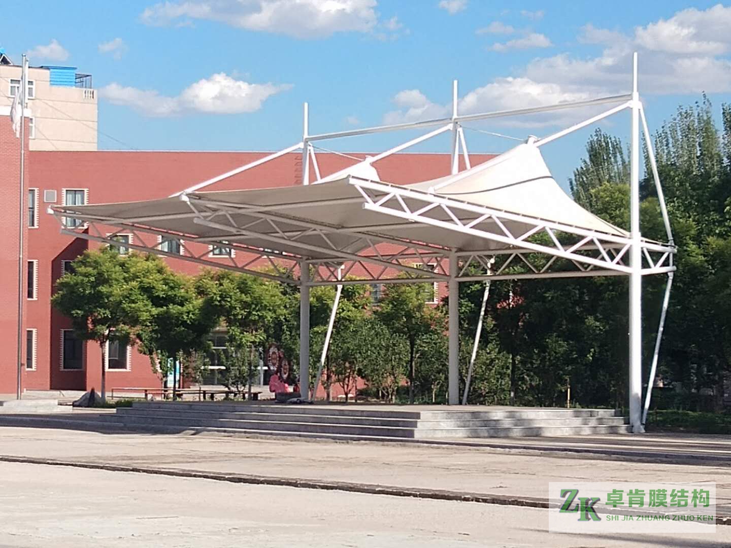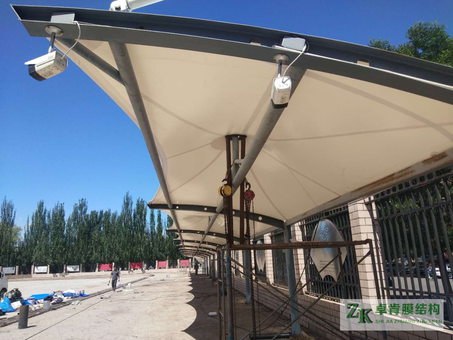 膜結構遮陽雨棚-張家口市中學膜結構遮陽雨棚施工中