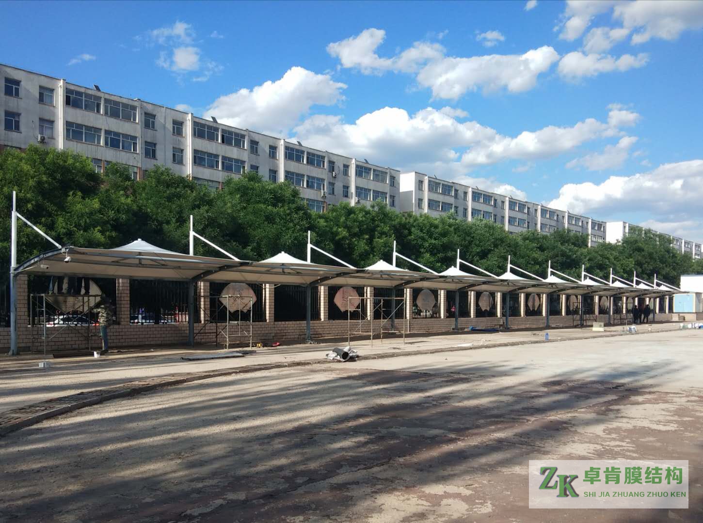 張拉膜車棚輕巧、別致的造型在停車場及候車廳的建設中擔當了重要角色,除了滿足fang風雨、fang日曬等基本功能外,并有較好的標識招攬效果,展現(xiàn)了人們個性化的yi面。