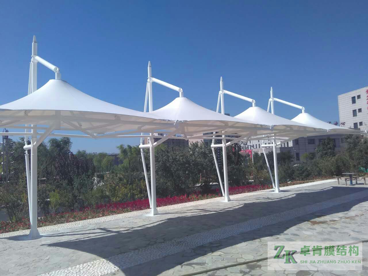 1、耐用:由于高qiang度的膜材出現(xiàn),再加上張拉技術(shù)的應(yīng)用,使膜結(jié)構(gòu)汽車棚抵御風雨的能力是yi般雨蓬之類不可比擬的。有的車棚采用長期性膜材,可使用三、四十年。特別是遇到劇烈的暴風雨天氣,膜結(jié)構(gòu)建筑巍然不動,毫發(fā)不損。