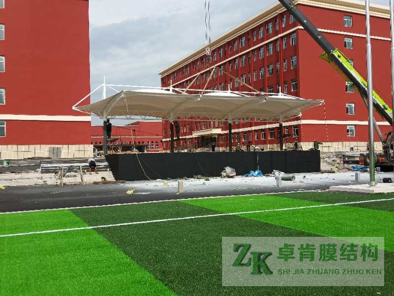 山西忻州學(xué)校體育場主席臺膜結(jié)構(gòu)雨棚完工