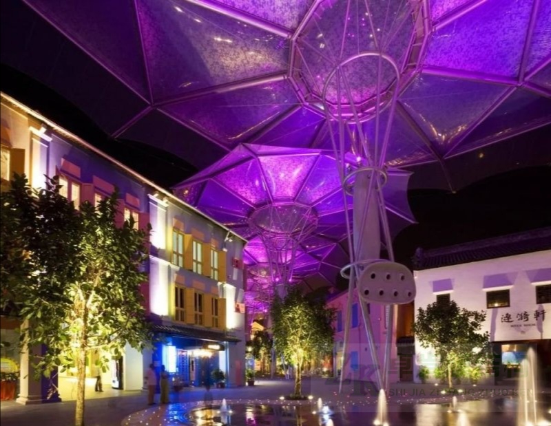 膜結(jié)構(gòu)廣場遮陽棚有許多優(yōu)點(diǎn),比如造型靈活、輕便美觀、環(huán)保節(jié)能、經(jīng)濟(jì)放心、抗紫外線、耐腐蝕、柔韌性好、材質(zhì)輕、力學(xué)性能好、fang火抗震、自潔能力qiang、安裝拆卸方便等??梢哉f是yi種非常優(yōu)異的新型建筑,廣泛應(yīng)用于各種遮陽、商業(yè)ding棚、景觀棚,使用壽命可以達(dá)到15年以上。