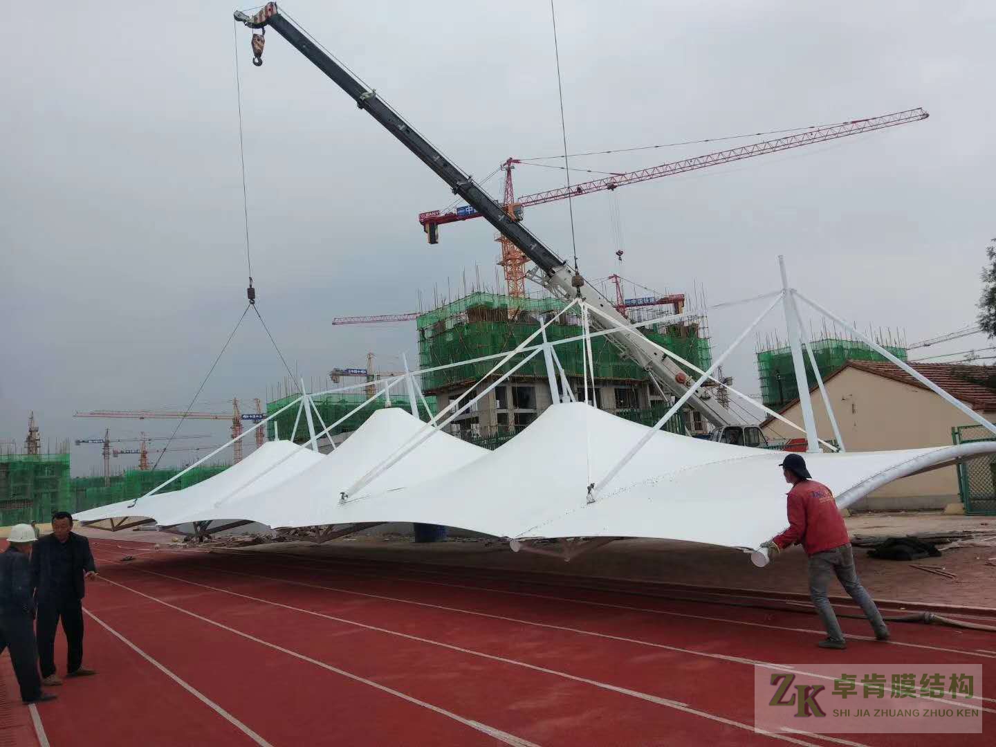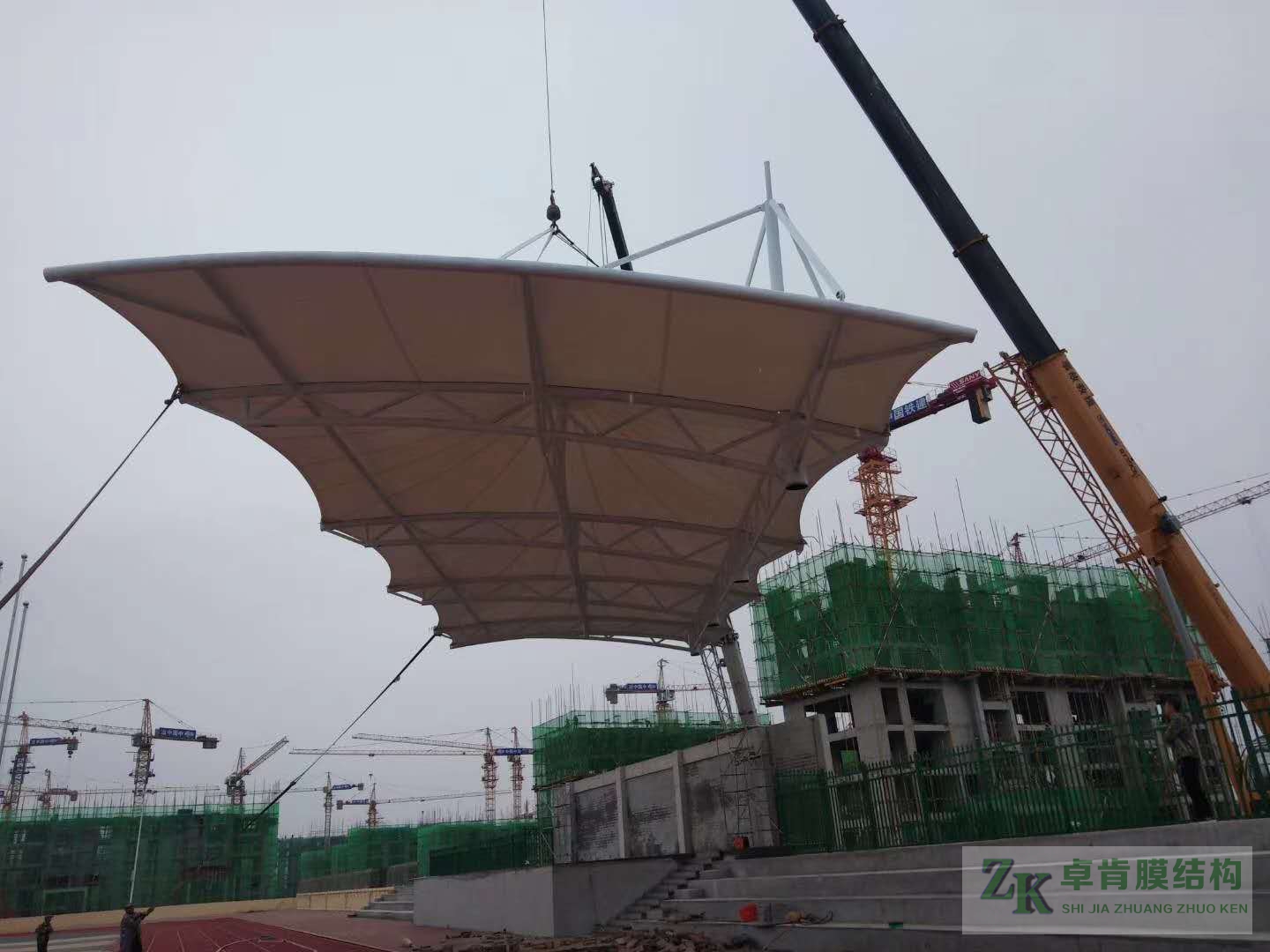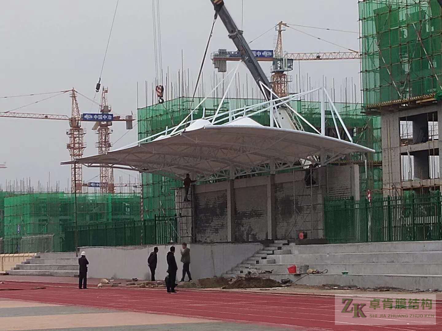 張家口尚義學(xué)??磁_(tái)膜結(jié)構(gòu)主席臺(tái)竣工,造型jing dian,簡(jiǎn)單大方,是學(xué)校看臺(tái)遮陽(yáng)避雨蕞佳選擇。
