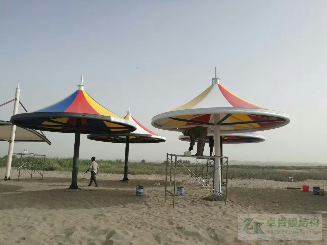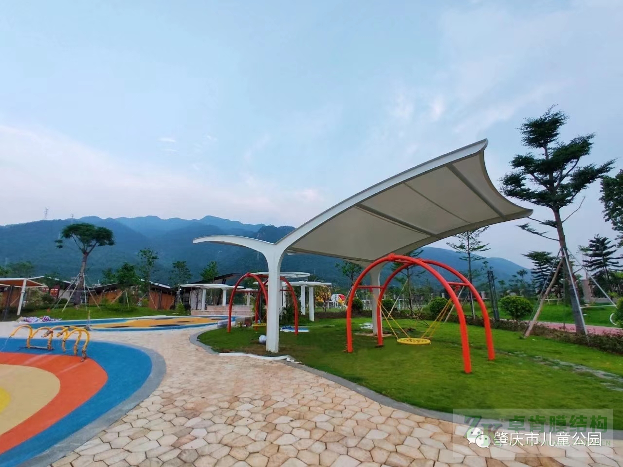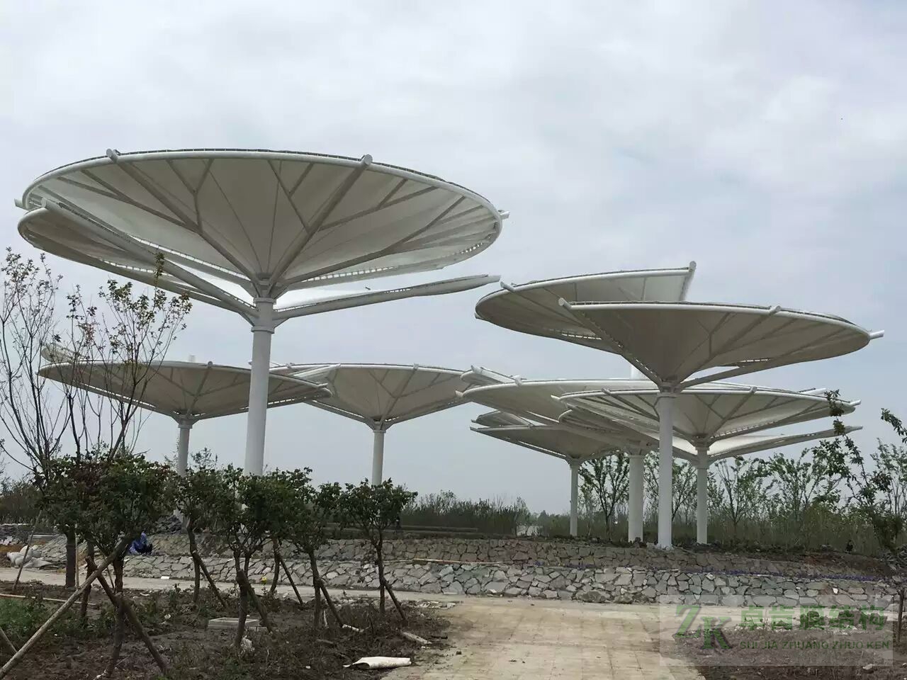膜結(jié)構(gòu)建筑工程不止于膜結(jié)構(gòu)停車棚、膜結(jié)構(gòu)看臺(tái)體育場(chǎng)館、污水池反掛膜結(jié)構(gòu)等,色彩斑斕、靈動(dòng)的景觀膜結(jié)構(gòu)在公園里隨處可見?,F(xiàn)有yi些此類張拉膜結(jié)構(gòu)美圖,供大家欣賞,我公司可承接此類型各種景觀膜結(jié)構(gòu)工程--石家莊卓肯膜結(jié)構(gòu)公司廠家歡迎您的垂詢問價(jià)。