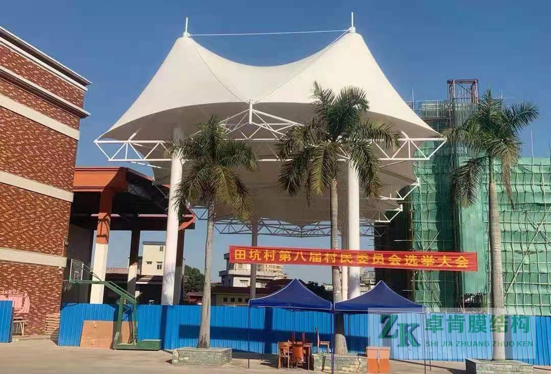 東莞田坑村委會籃球場膜結(jié)構(gòu)遮陽膜竣工