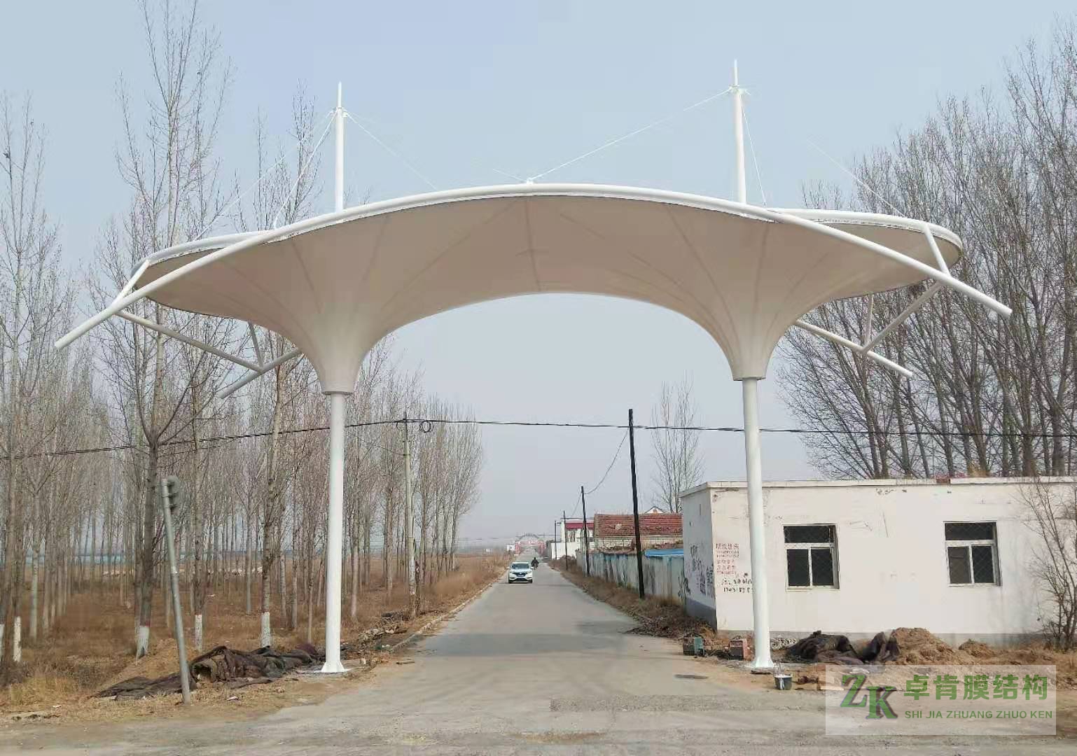 武邑縣武羅鄉(xiāng)村振興示范區(qū)出入口張拉膜。采用張拉膜結(jié)構(gòu)建筑,標志性qiang,美觀大方。
