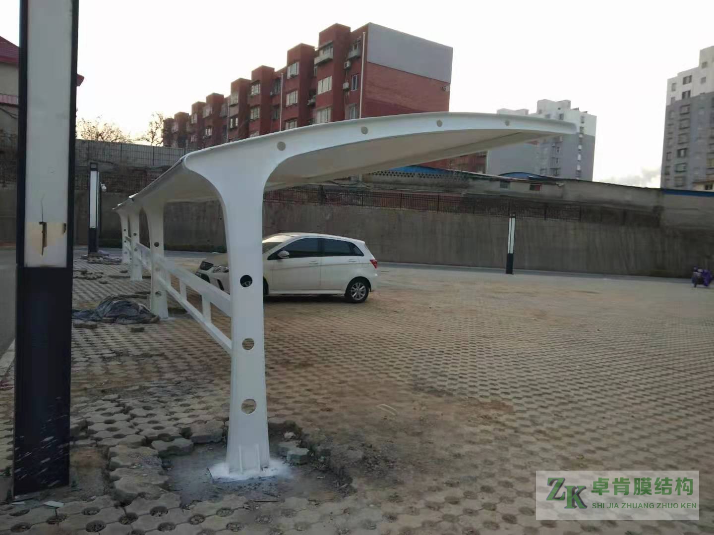 膜結(jié)構(gòu)汽車(chē)停車(chē)棚的篷布采用PVC/PVDF/PTFE/ETFE,而膜材的蕞大特點(diǎn)是qiang度高、耐久性好、fang火難燃、自潔性好,不受紫外線(xiàn)影響,使用壽命長(zhǎng),yi般15-30年。具有高透光率,透光率為13%,對(duì)熱能反射率73%,熱吸收量很少。正是因?yàn)檫@種劃時(shí)代的膜材料的發(fā)明,使膜結(jié)構(gòu)汽車(chē)車(chē)棚成為現(xiàn)代化的長(zhǎng)期建筑。