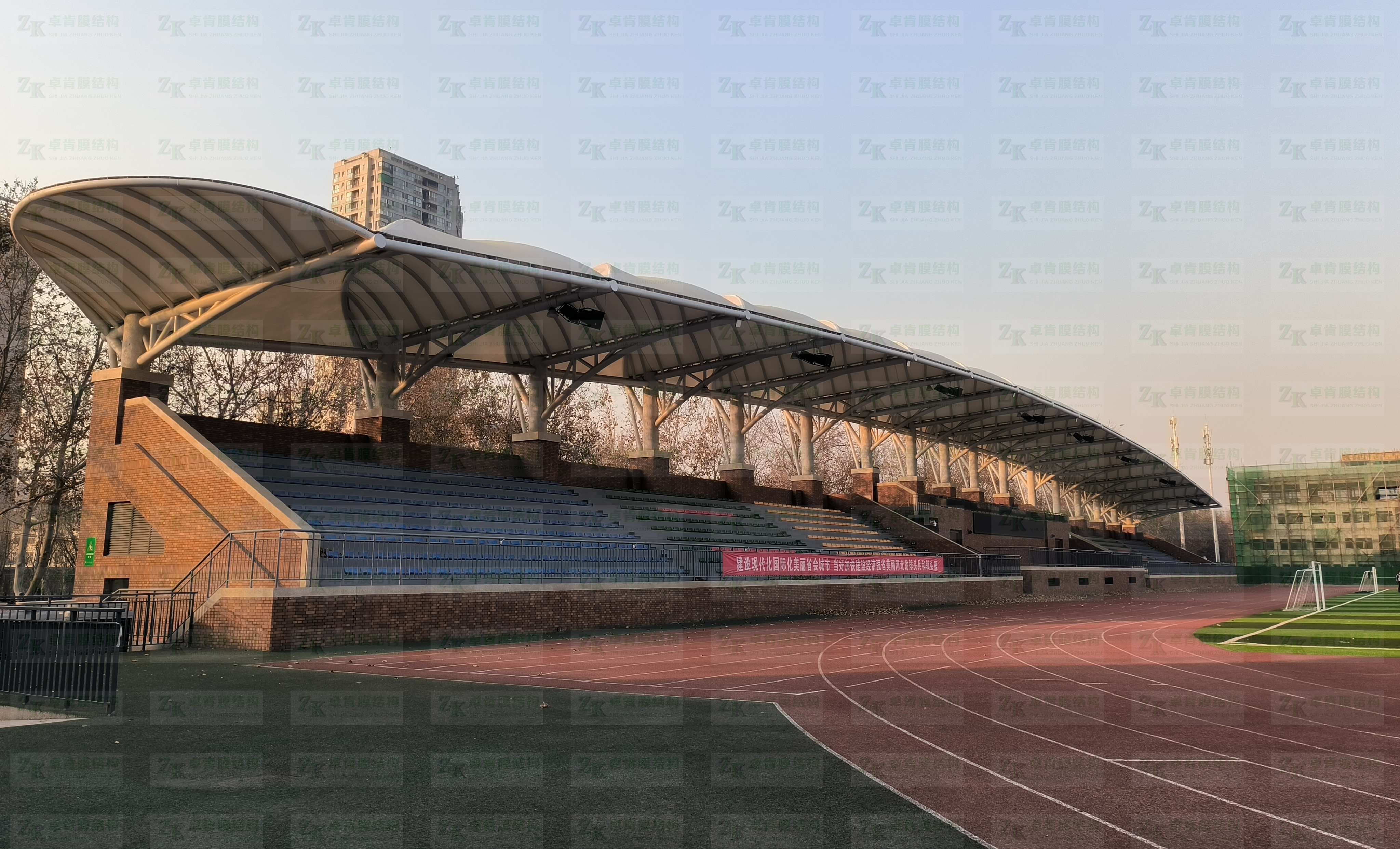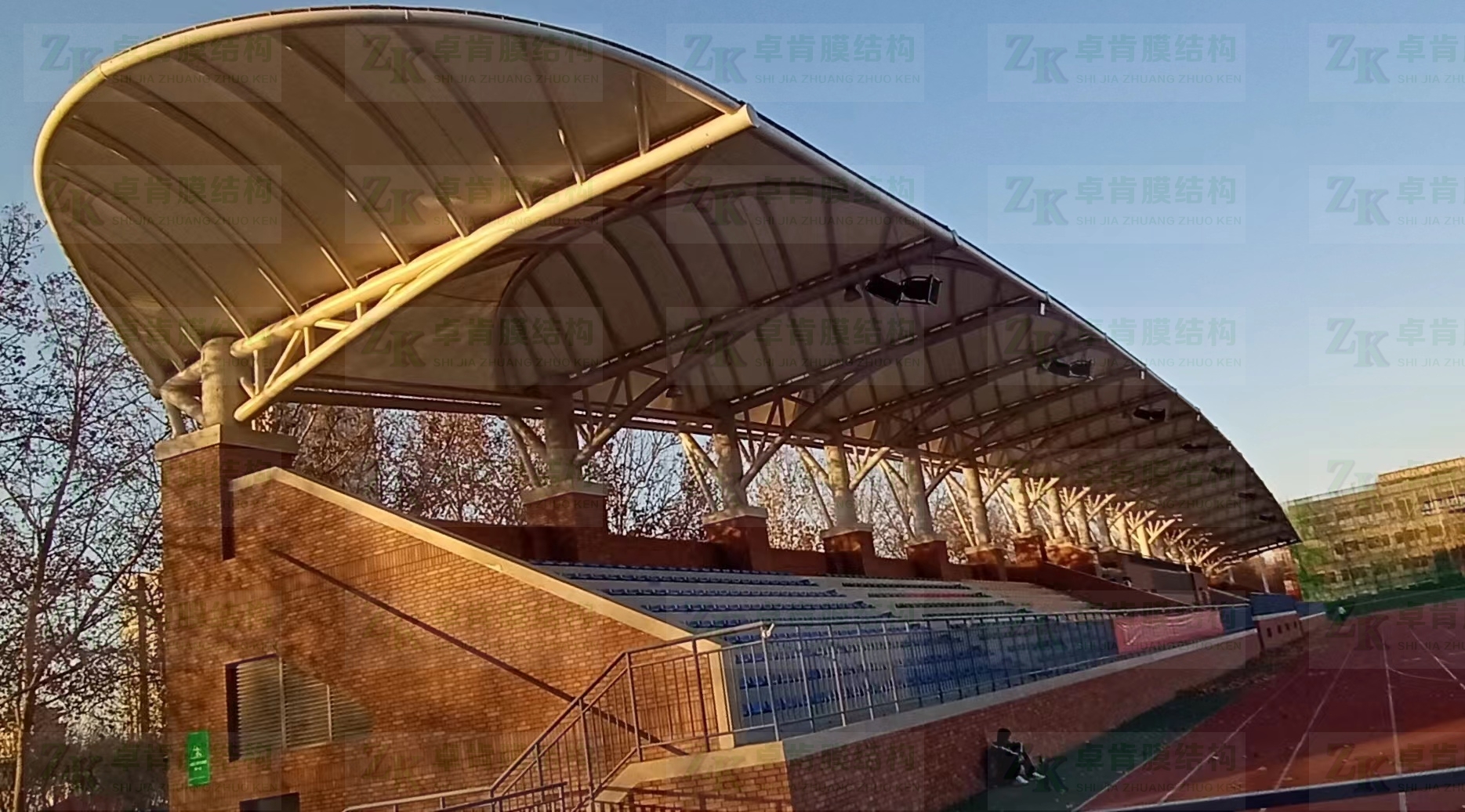 石家莊二中學校膜結構體育看臺遮陽棚竣工。該工程采用曲線設計,包括整個看臺的形狀和頂棚,讓建筑看上去更加現(xiàn)代、流暢且符合體育場館的特點,同時也增加了更為舒適的觀賽體驗。