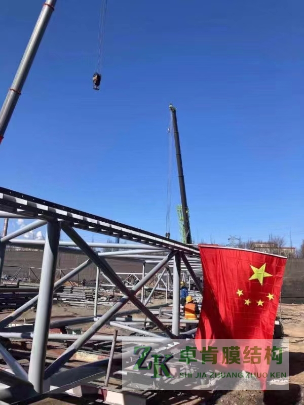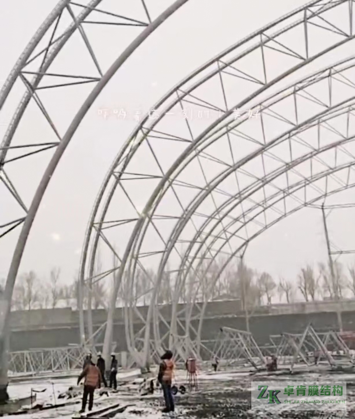 張家口宣化區(qū)宣鋼膜結(jié)構(gòu)煤棚緊張施工中