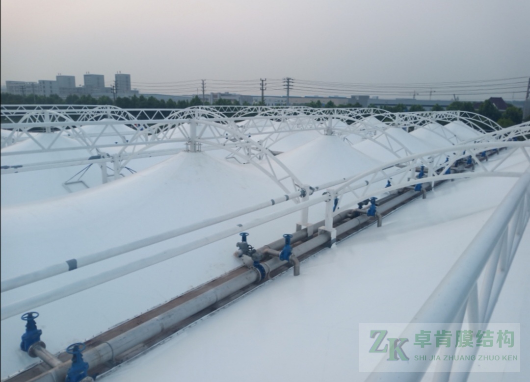 隨著工業(yè)污染的日加嚴(yán)重,越來越多的客戶選擇使用反掛膜結(jié)構(gòu)加蓋,因為這種加蓋方式不僅遵循環(huán)保生產(chǎn)原則,而且對鋼構(gòu)的使用量較少,項目整體費用降低,隨著池體跨度的不斷增大,膜結(jié)構(gòu)張拉過程中可以克服傳統(tǒng)加蓋項目中池體跨度過大造成的施工困難問題,得到很多廠家和客戶的信賴。