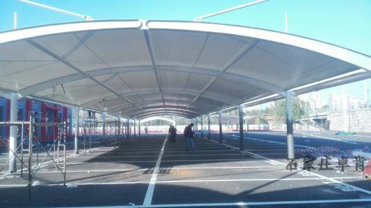 膜結(jié)構(gòu)車棚的施工周期短,膜材裁剪便利。拼合成型及骨架的鋼結(jié)構(gòu)、鋼索均在工廠加工制作,現(xiàn)場(chǎng)只需組裝,施工簡(jiǎn)便,所以施工周期比傳統(tǒng)修建短。