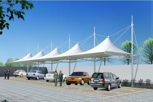 第二點,膜結(jié)構(gòu)停車棚ding部封板采用茶色(顏色可挑選)陽光板封ding,與車棚整體骨架用壓條鉚接固定,耐酸堿腐蝕,有足夠qiang度對棚內(nèi)車輛起到保護作用。