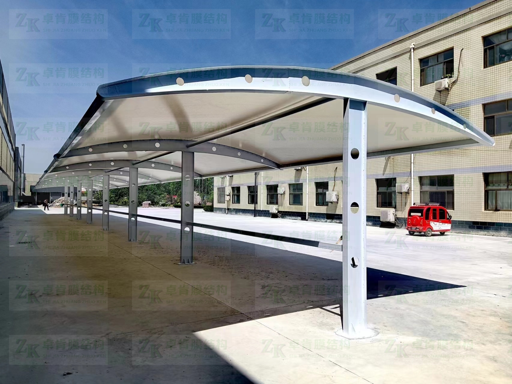 石家莊卓肯膜結構工程有限公司是一家主營膜結構、膜結構車棚、膜結構停車棚、膜結構看臺、膜結構景觀棚、膜結構遮陽棚、膜結構雨棚、張拉膜結構、PTFE膜結構、ETFE膜結構、大跨氣膜結構、沼氣、污水膜結構、鋼膜結構的膜結構公司、膜結構工程膜結構建筑膜結構廠家。業(yè)務遍布河北:石家莊,保定,唐山,廊坊,邢臺,張家口,承德,滄州,衡水,邯鄲,秦皇島等多個城市,是國內(nèi)最具規(guī)模的專業(yè)性膜結構工程膜結構建筑膜結構公司、膜結構工程膜結構建筑膜結構廠家之一。