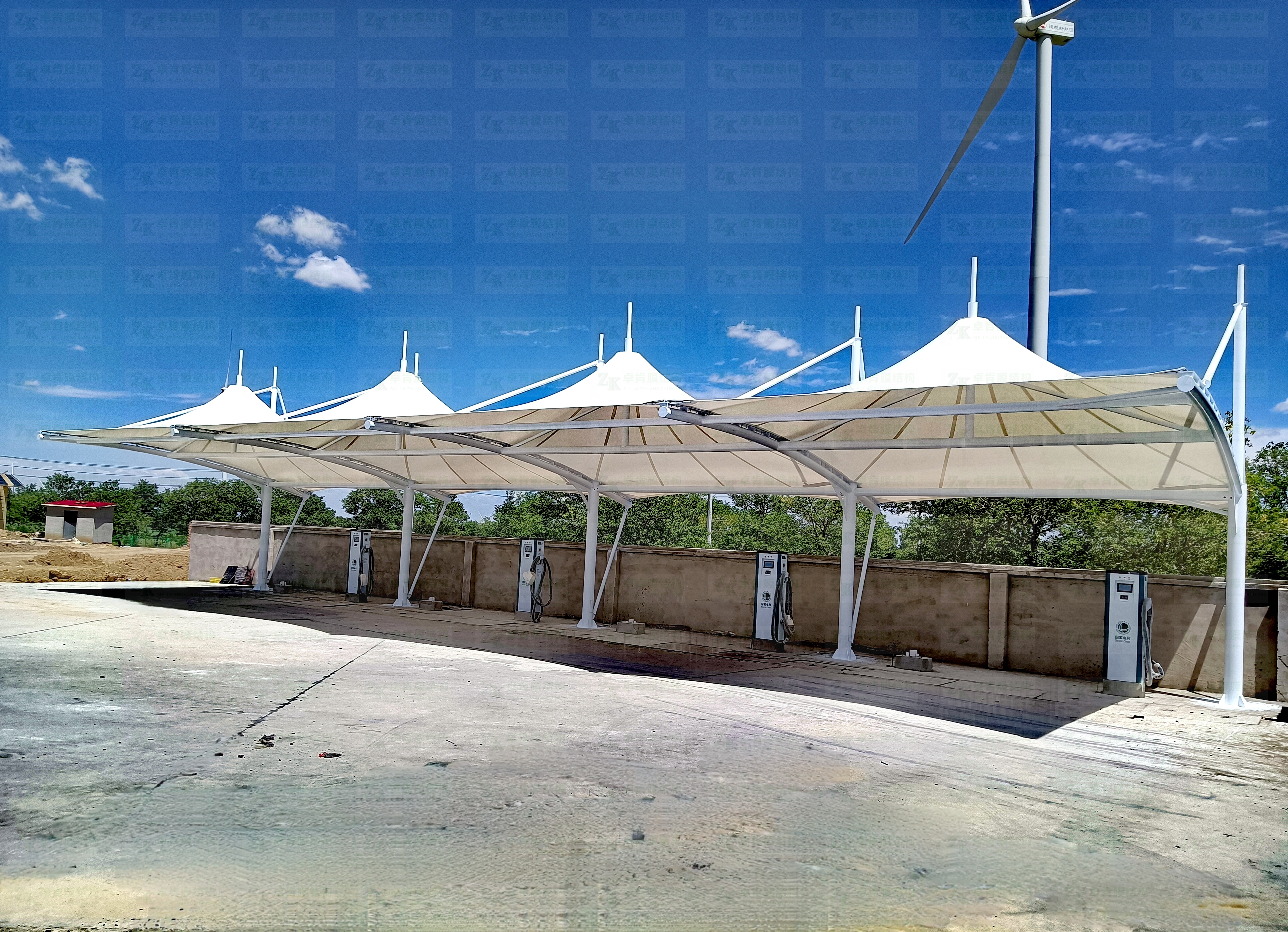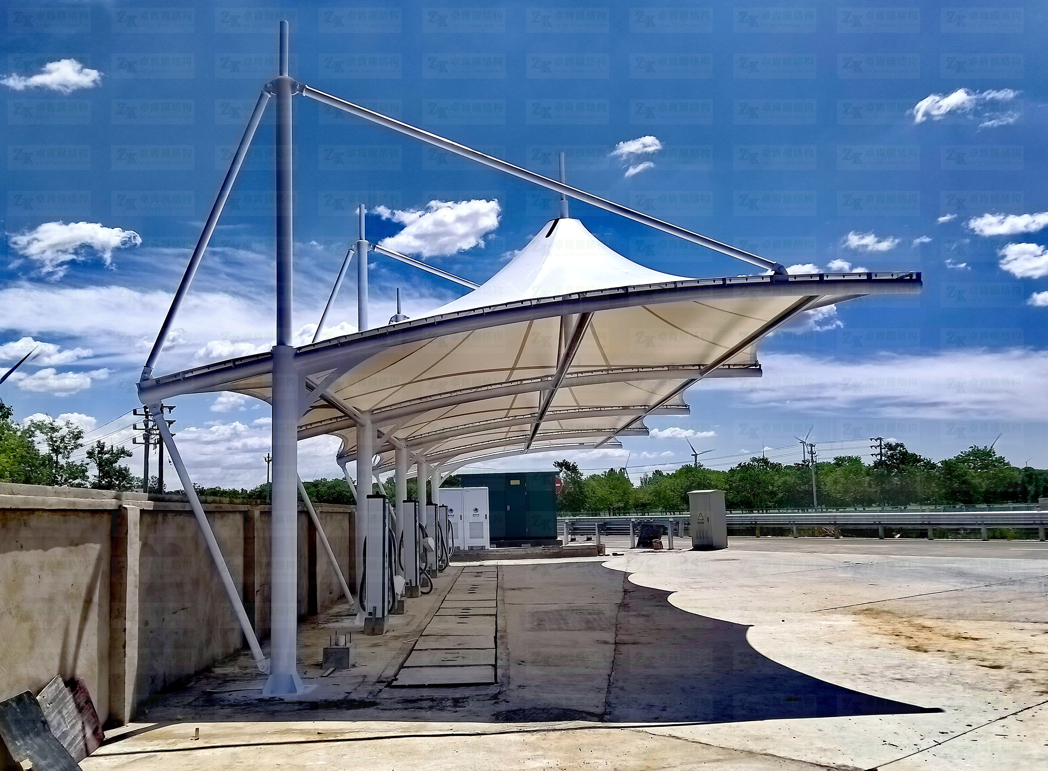 膜結(jié)構(gòu)遮陽棚現(xiàn)在幾乎是高速路服務(wù)區(qū)充電樁的標(biāo)配,既能遮陽避雨,又可保護(hù)機(jī)器,美觀大方,更是時尚元素。