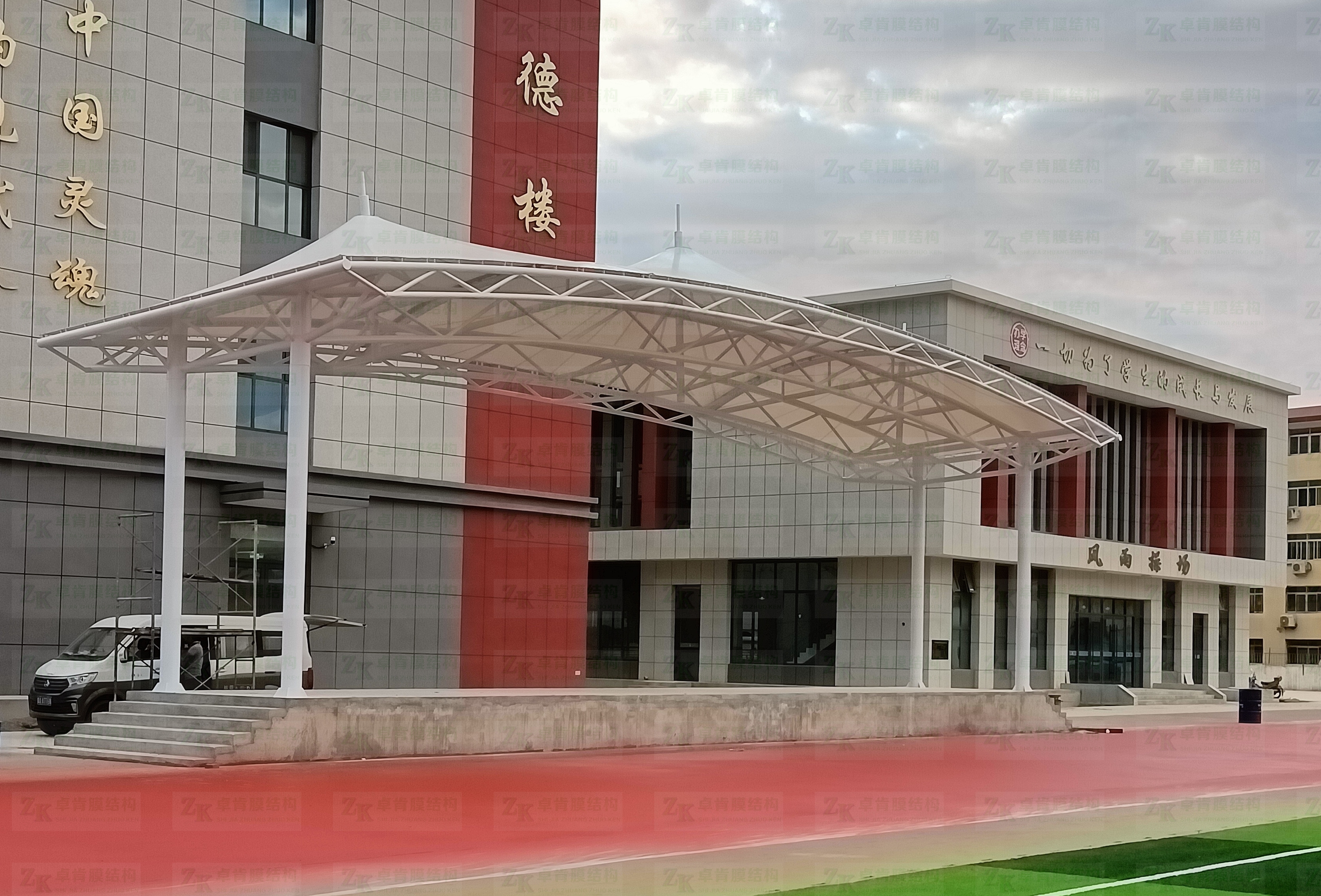 寧夏回族自治區(qū)中寧縣小學(xué)主席臺遮陽膜結(jié)構(gòu)工程竣工,宏偉壯觀、簡潔典雅,成為學(xué)校的一道亮麗風(fēng)景線。